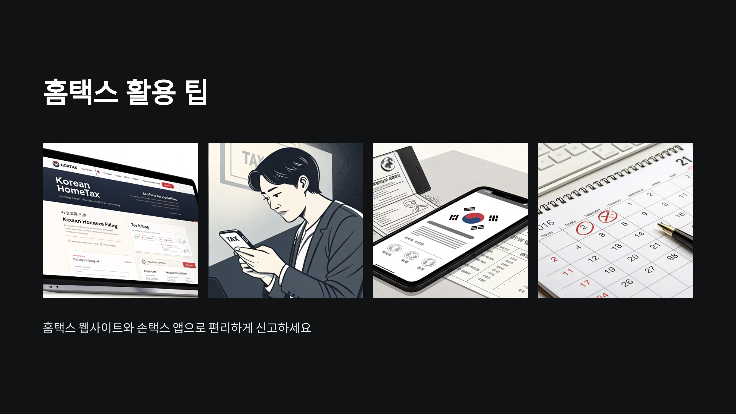 종합소득세 신고는 국세청 홈택스(hometax.go.kr)를 통해 온라인으로 편하게 할 수 있어요. 요즘은 모바일 손택스 앱도 많이 활용됩니다. 본인이 직접 신고하거나, 세무사를 통해 대행할 수도 있어요.