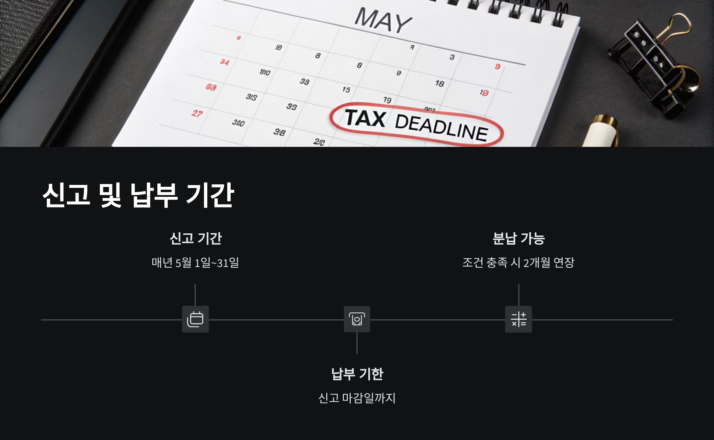 - 신고 기간: 매년 5월 1일 ~ 5월 31일